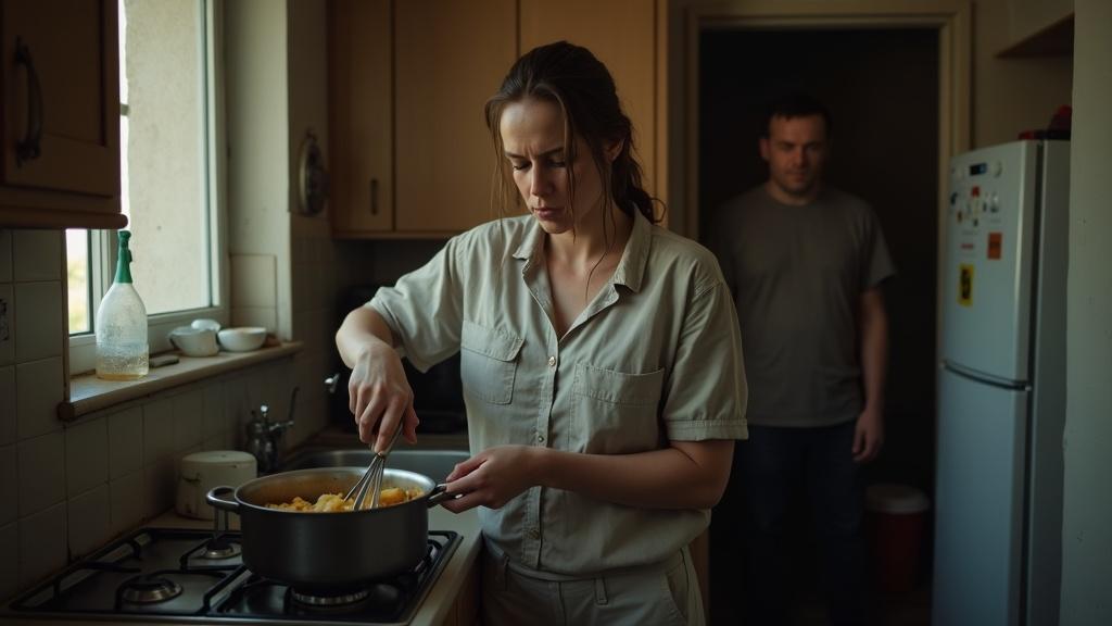 Оксана медленно повернулась от плиты, где лениво кипела картошка. Остатки сил ушли на то, чтобы хотя бы это довести до готовности. В отражении чайника она увидела своё лицо: пылающие щеки, прилипшие ко лбу влажные волосы и затуманенный взгляд.