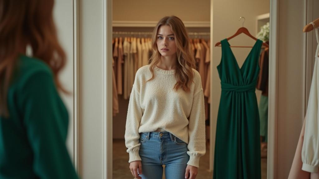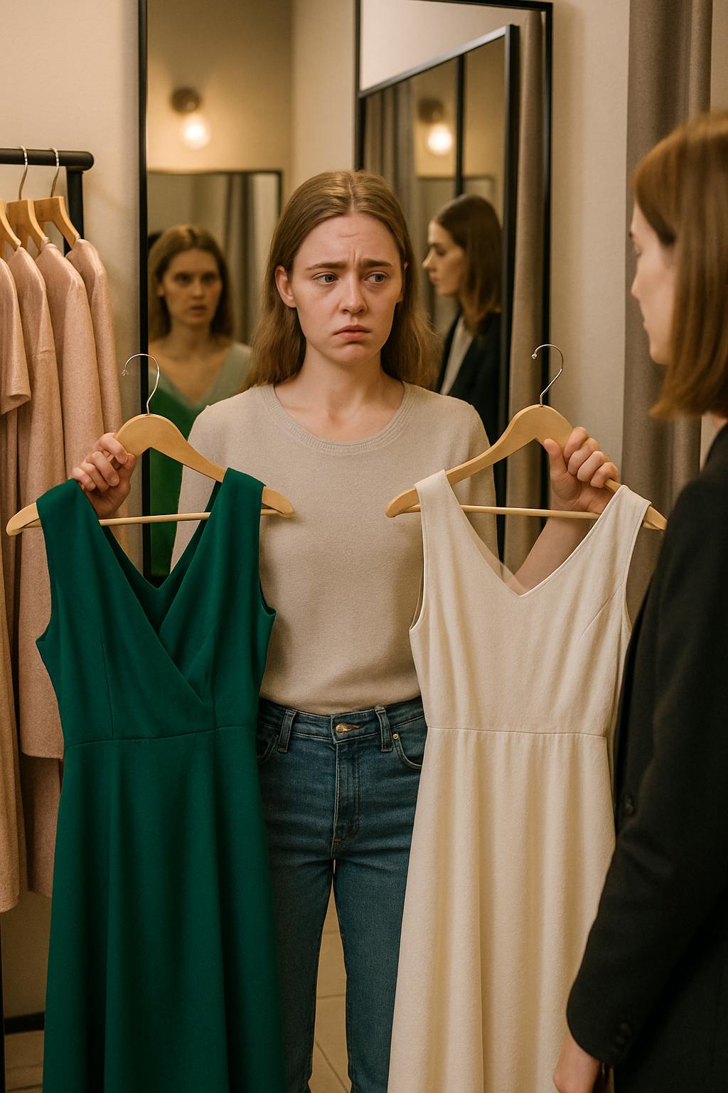 Изумрудное выглядело великолепно. В нём она чувствовала бы себя уверенно и грациозно — но цена кусалась: почти половина её месячного дохода. Кремовое было скромнее во всём: и по фасону, и по стоимости. Если прийти в нём — Лариса скажет, что невестка позорит семью; если выбрать изумрудное — обвинит в попытке привлечь к себе внимание.