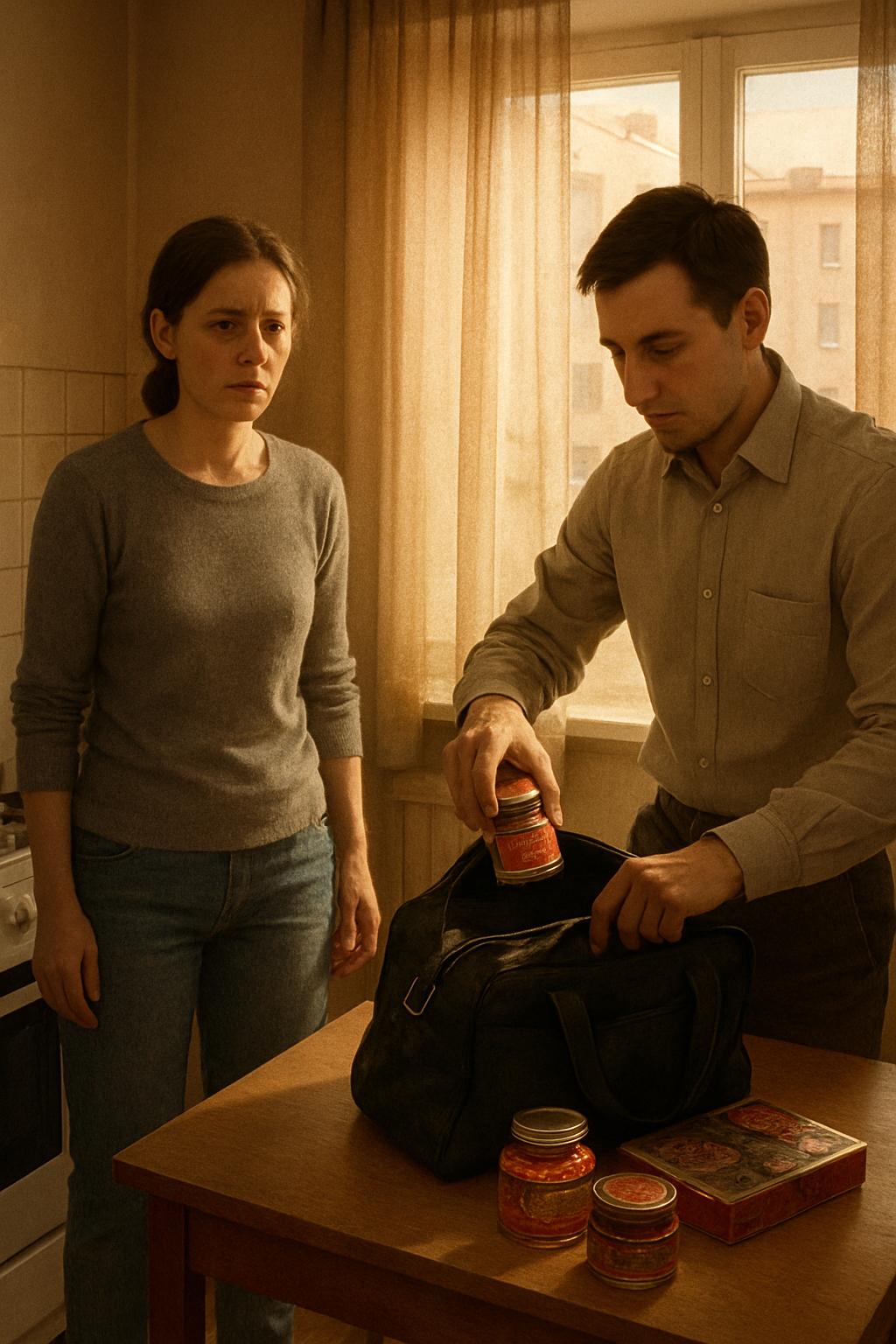 Зоряна стояла у плиты, наблюдая, как Ярослав аккуратно складывает в сумку банку красной икры. Следом туда легла упаковка сёмги, пара колбас, сыр премиум-класса, банка оливок, элитный шоколад и коробка конфет.