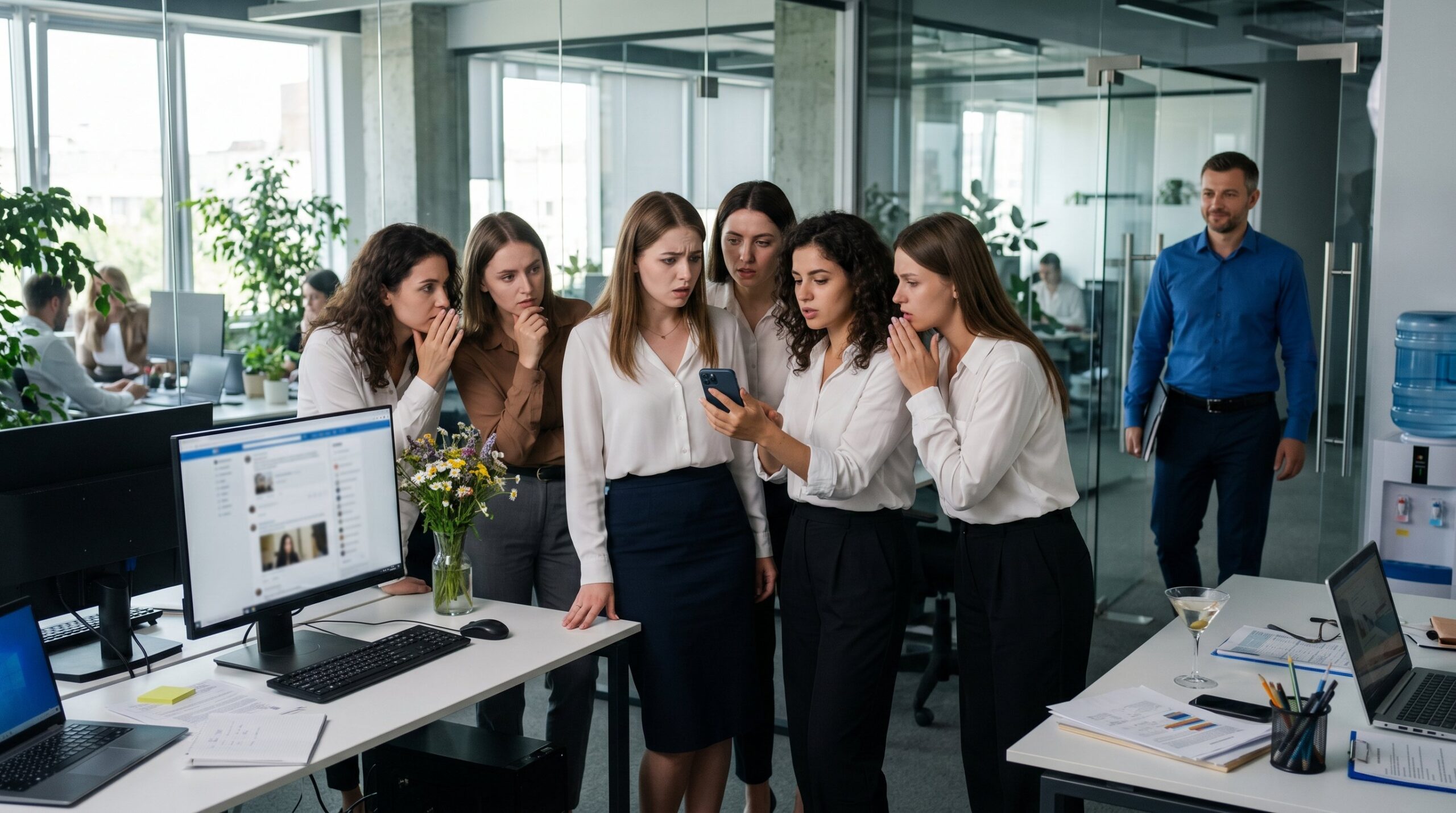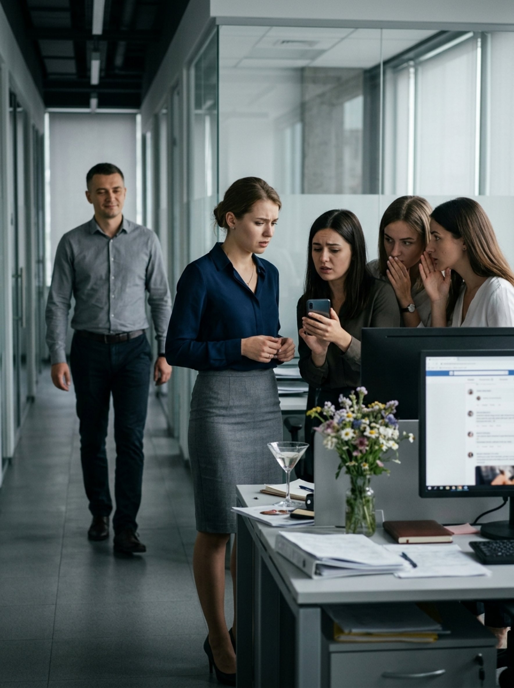 Когда Оксана переступила порог офиса, воздух будто застыл. Тишина была такой напряжённой, что у неё неприятно заныло под рёбрами. Она машинально опустила взгляд на себя — вдруг в спешке что-то перепутала? Мелькнула даже абсурдная мысль: не явилась ли она без юбки, как героиня какой-нибудь романтической комедии? Но нет — юбка была на месте, приличной длины, всё как обычно.