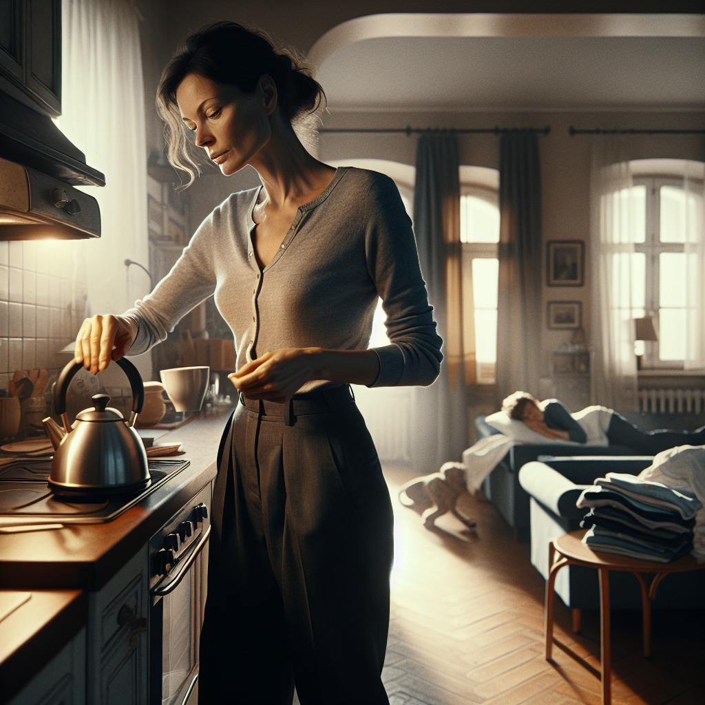 Чтобы не разбудить детей, Елена тихо ставила чайник, раскладывала рубашки на стуле, готовила тетради к утру.