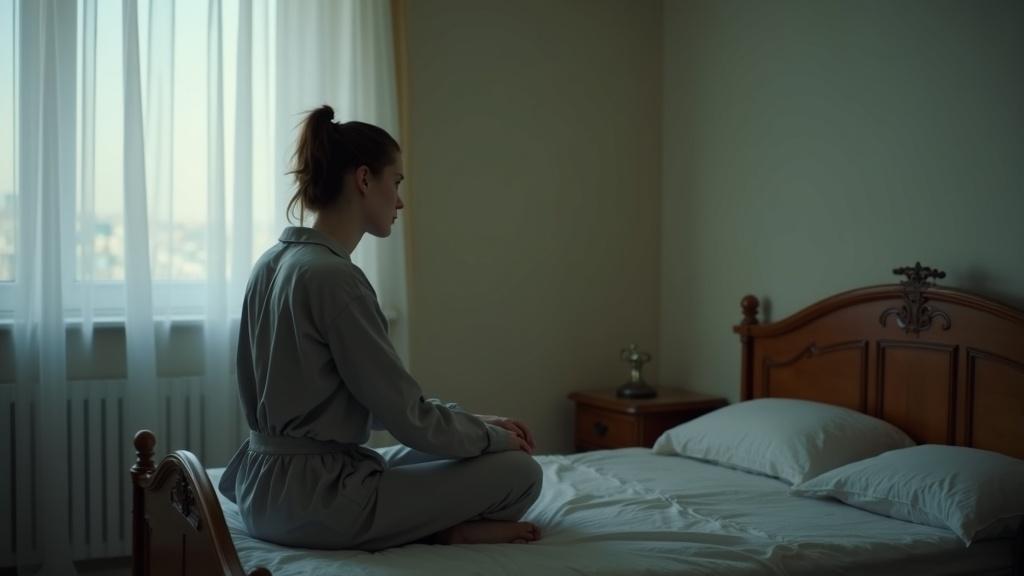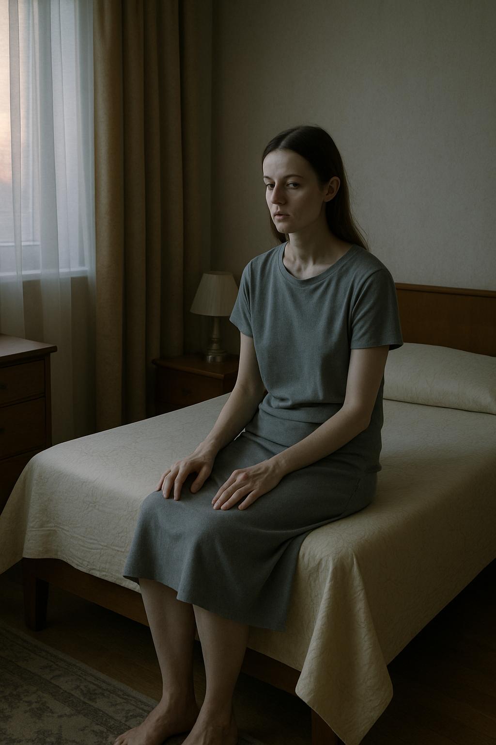 София сидела в спальне на краю кровати прямо как по линейке выпрямившись и смотрела перед собой в стену. На ней был тот же домашний костюм, что утром, но сейчас он выглядел чужим и безжизненным. Руки покоились ладонями вниз на коленях; лицо оставалось спокойным до пугающей степени — как у человека после удара: боль ещё не пришла, только оцепенение осталось.