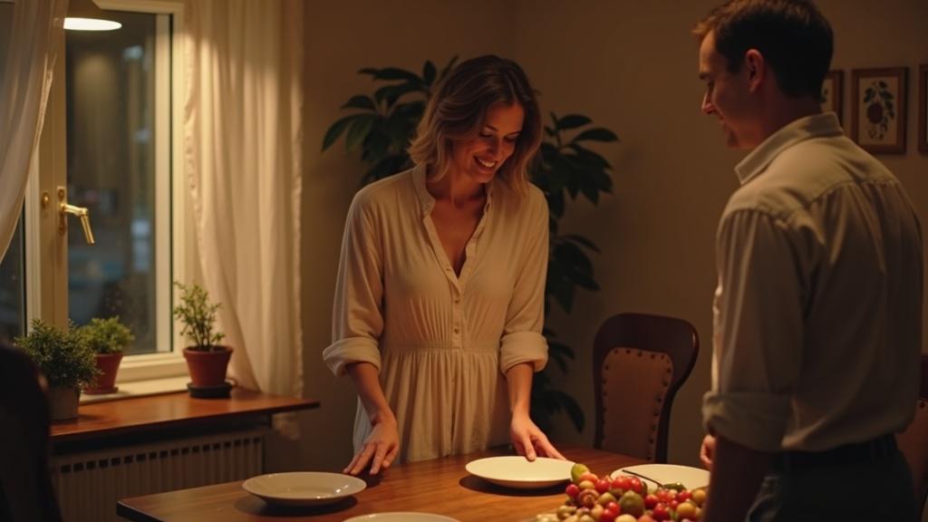 Оксана поставила на стол последнюю тарелку и облегчённо вздохнула. Всё готово. Просто, но со вкусом: овощной салат с заправкой, запечённая курица, немного красной рыбы — удалось купить по скидке. Для девочек она накрыла отдельный детский стол: бутерброды, фрукты и сладости — ведь они уже поужинали.