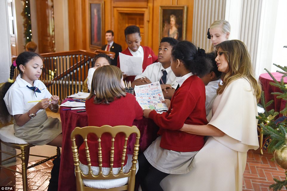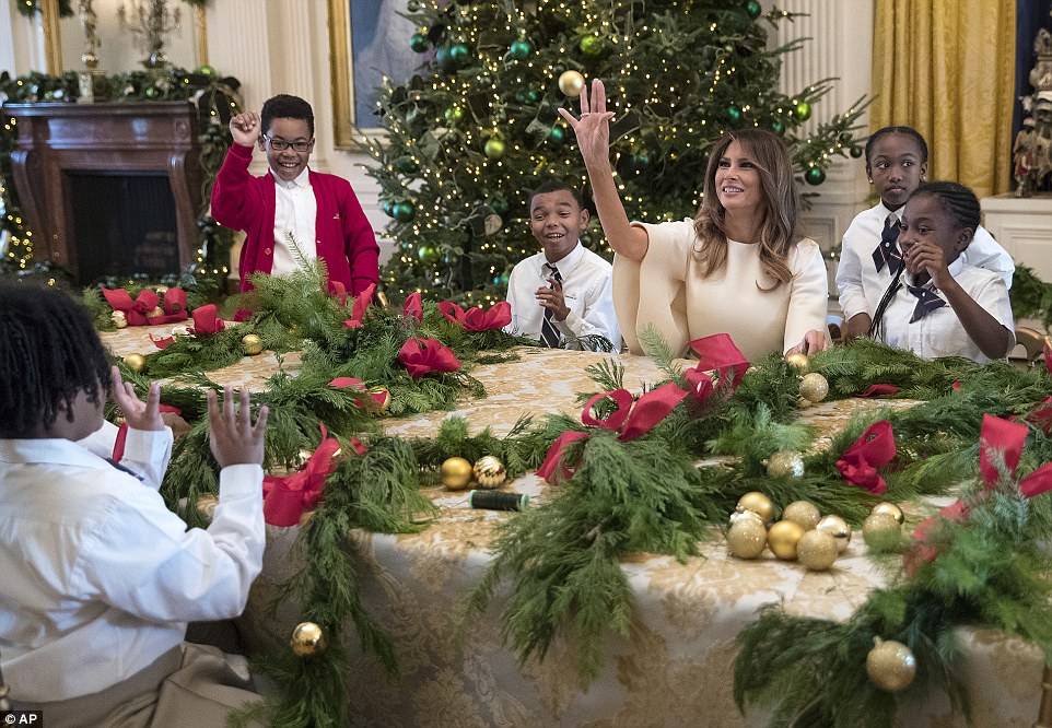 Показ убранства Белого дома приурочили к благотворительному приему детей, учеников одной из школ соседнего штата. Но удивлялись не только они — когда еще увидишь в президентских апартаментах балерин, танцующих вальс «Щелкунчик» Чайковского? Детишки не сразу поняли, кто есть кто, а потом засыпали Меланью вопросами «Ты — первая леди?» и «А почему ты похожа на ангела?».