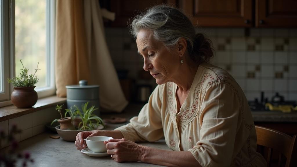 Ей было чуть больше пятидесяти, и возраст оставил свои следы на лице – морщинки вокруг глаз, слегка опущенные уголки губ, но глаза всё ещё оставались молодыми и добрыми.