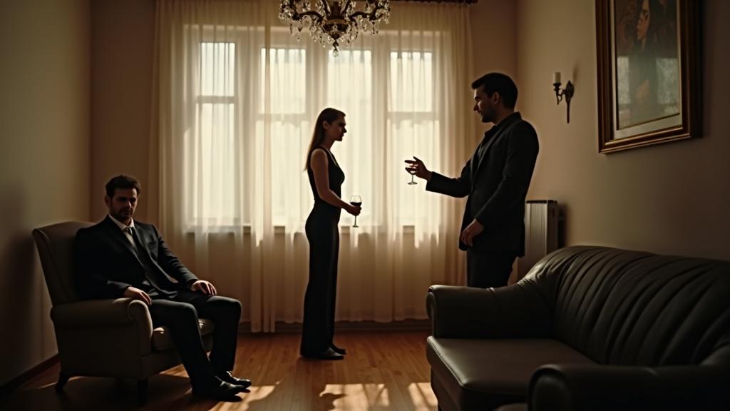 Оксанка застыла посреди комнаты. В её руках был бокал вина, который всего минуту назад Богдан торжественно вручил ей — в честь их помолвки. Алое вино медленно покачивалось, отражая блики от хрустальной люстры.