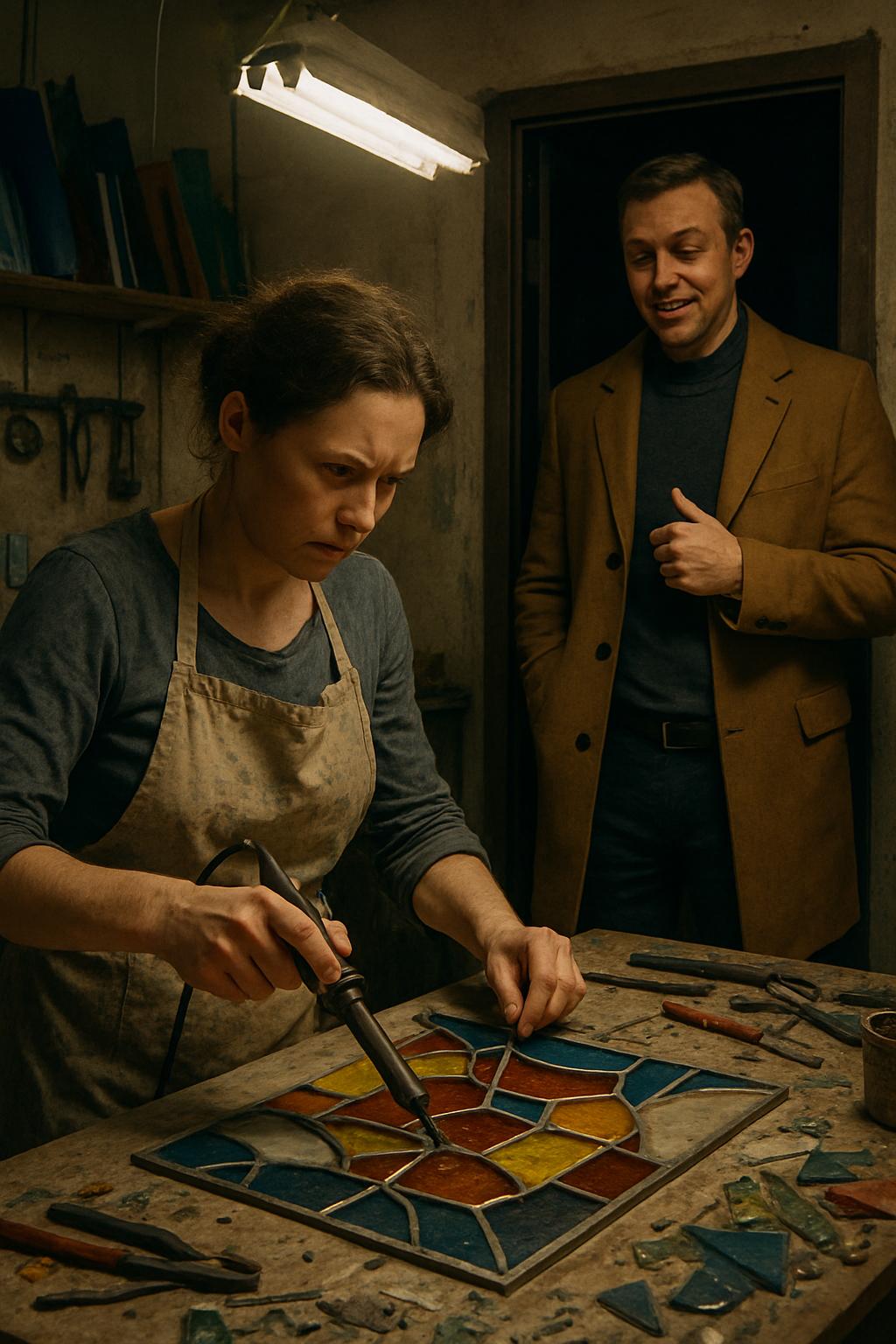 Я продолжала работать, не поднимая глаз от витража. Паяльник в ладони ощущался как естественное продолжение руки — горячий, послушный. Обычно запах канифоли и расплавленного олова действовал на меня умиротворяюще, но сегодня он щипал нос так же, как и присутствие мужа. Нестор, востребованный автор квест-сценариев, привык считать, что всё вокруг должно подстраиваться под его желания. В своём щегольском пальто цвета «кэмел», нелепом среди пыли и стеклянной крошки, он выглядел чужеродно и демонстративно уверенно.