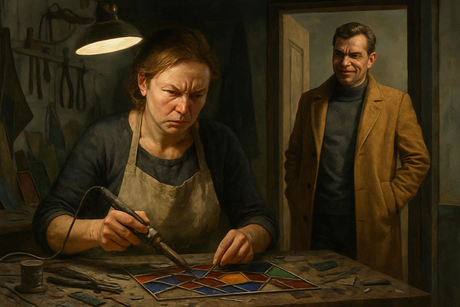 Я продолжала работать, не поднимая глаз от витража. Паяльник в ладони ощущался как естественное продолжение руки — горячий, послушный. Обычно запах канифоли и расплавленного олова действовал на меня умиротворяюще, но сегодня он щипал нос так же, как и присутствие мужа. Нестор, востребованный автор квест-сценариев, привык считать, что всё вокруг должно подстраиваться под его желания. В своём щегольском пальто цвета «кэмел», нелепом среди пыли и стеклянной крошки, он выглядел чужеродно и демонстративно уверенно.