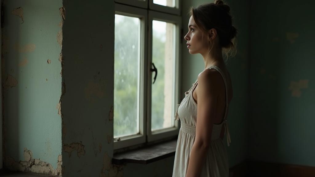 В это время Оксана мыла окна в своем новом жилище – пустом доме с запахом пыли и старости. Ее взгляд скользил по облупленным стенам и скрипучим половицам; тоска стояла в глазах тяжелым грузом воспоминаний о прежней жизни – уютной городской квартире с паркетом и легкими занавесками…
