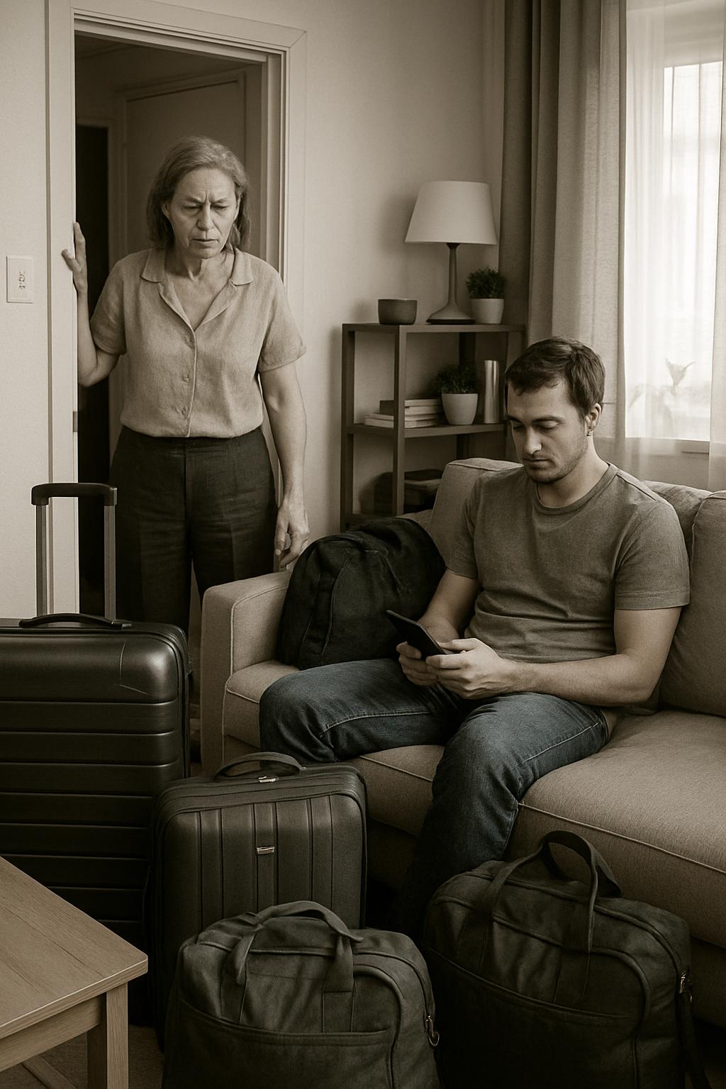 Муж сидел на диване, уткнувшись в экран телефона. Молчал. На том самом диване, где они с Владиславом обычно по вечерам смотрели сериалы, теперь громоздились три огромных чемодана и две сумки — вещи его матери.