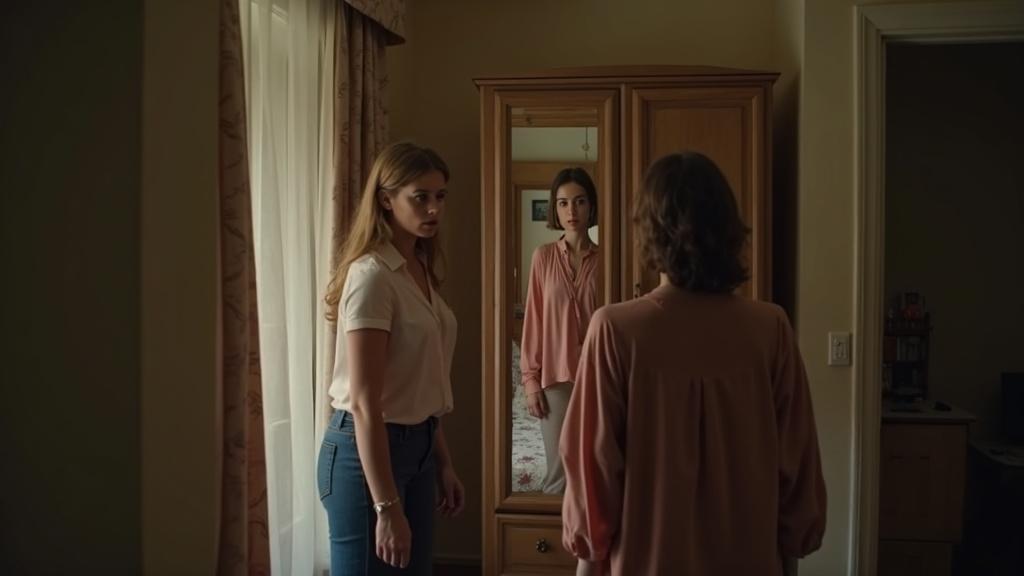Перед зеркальной дверцей шкафа-купе, наклонившись, чтобы поймать ракурс для селфи, стояла Оленька — младшая сестра её мужа. На ней была та самая блузка приглушенного розового оттенка, которую Марта купила себе в честь премии неделю назад и приберегала для важного делового собрания. Лёгкая ткань натянулась на пышную грудь золовки так сильно, что казалось — пуговицы вот-вот разлетятся в стороны.