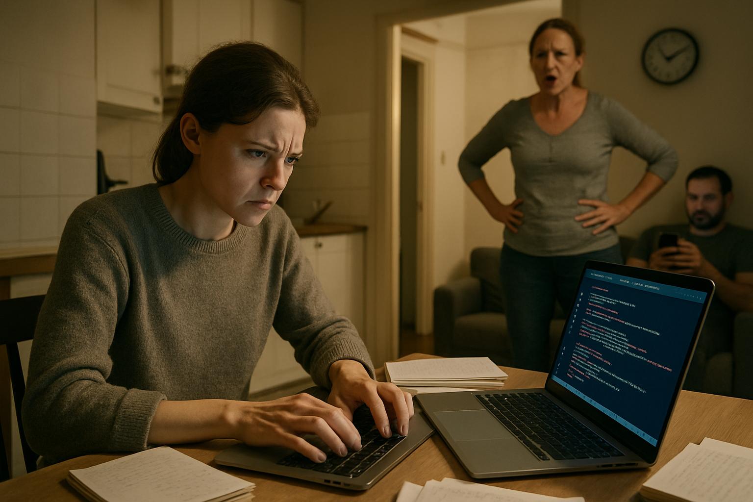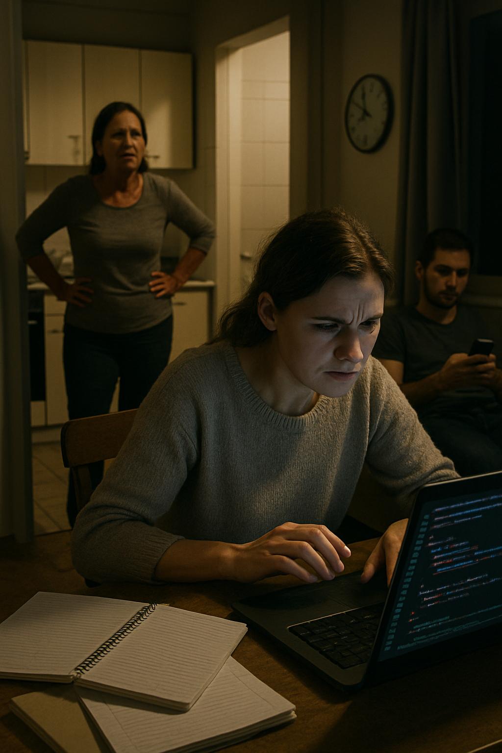 Ульяна подняла глаза от ноутбука — строки кода вновь пестрели ошибками и неприятно резали взгляд. До дедлайна оставалось всего три дня, а заказчик уже с утра обрывал телефон, названивая каждые тридцать минут. Этот проект должен был обеспечить им спокойную жизнь хотя бы на пару ближайших месяцев.