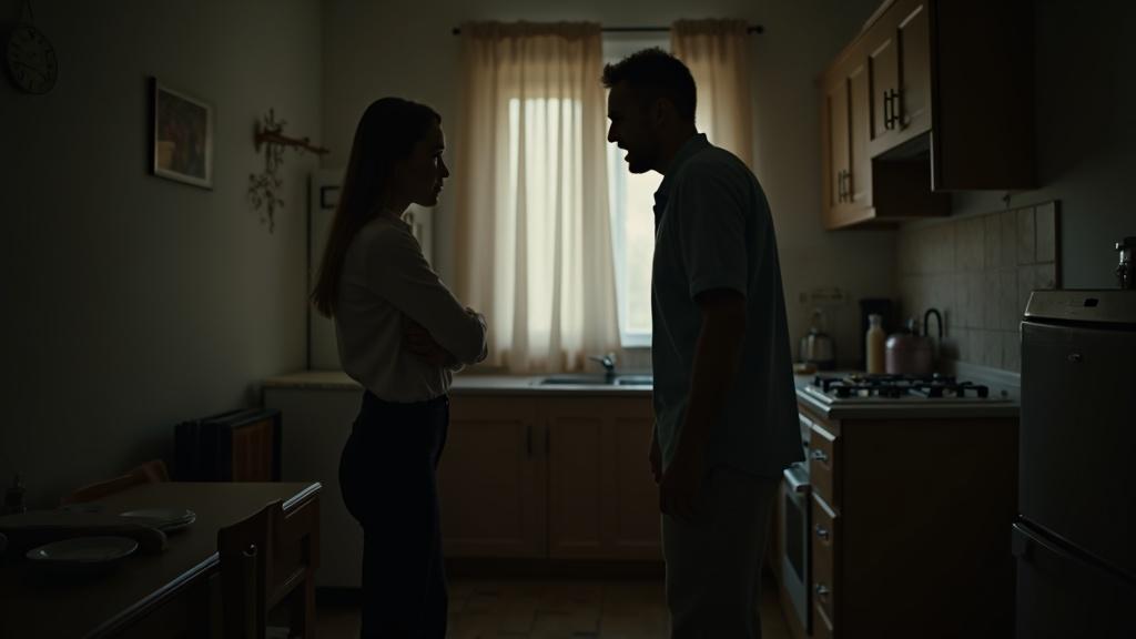 Слабый свет на кухне придавал его лицу чужие черты: заострённые скулы, плотно сжатые губы, взгляд холодный и обвиняющий, словно у прокурора.