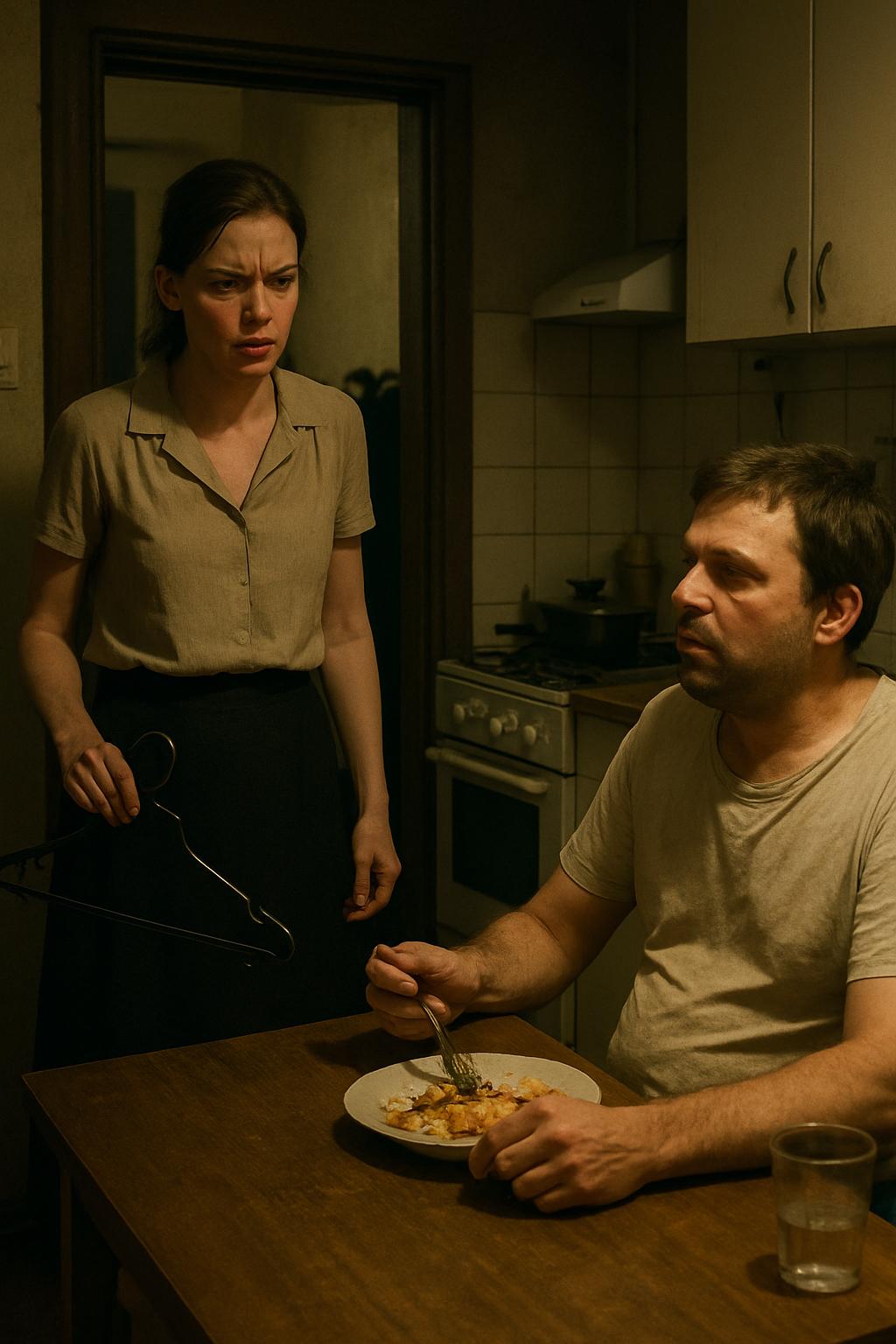Виталий сидел за столом, лениво ковыряя вилкой жареную картошку. Он даже не повернул головы на голос жены, продолжая безучастно жевать и уставившись в экран смартфона. Перед ним стояла открытая бутылка пива и лежали обглоданные корки черного хлеба. Воздух был пропитан тяжелым запахом пережаренного масла и лука — аромат мгновенно въелся в ткань Александриной блузки.