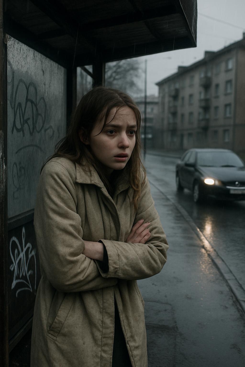Девушка стояла на автобусной остановке, кутаясь в тонкий плащ и тщетно пытаясь укрыться от ледяного ветра за остатками пластиковых панелей полуразрушенного павильона, пострадавшего от выходок местных подростков. Несмотря на то что дворники лобового стекла с трудом справлялись с потоками воды даже при максимальной скорости, я сразу заметил её — яркая одежда выделяла её среди серого пейзажа. Мне стало жаль промокшую до нитки девушку, и я решил остановиться. Сдал назад к самому краю остановки и опустил боковое стекло: