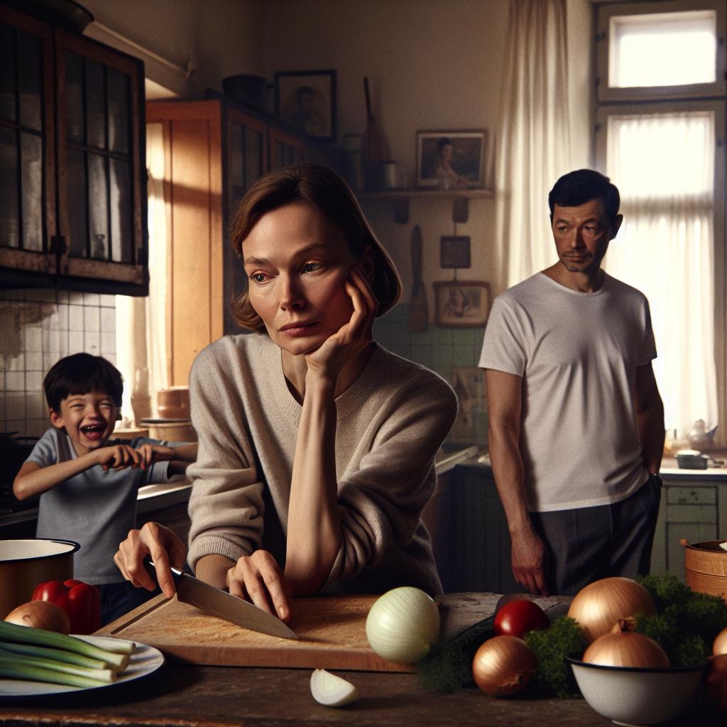 Ганна крепче сжала нож в руке… Шум из комнаты стих мгновенно… Повисла тяжёлая тишина… Она выглянула из-за дверного косяка: Михайло молча складывал яркие детали конструктора под внимательным взглядом Ростислава… На лице мальчика больше не было прежнего восторга… Только растерянность… И обида…