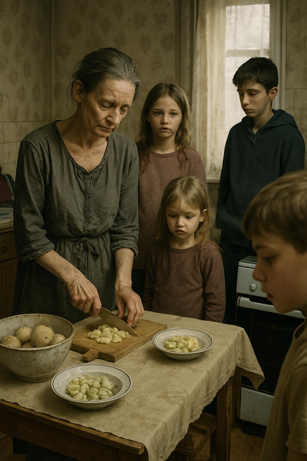Муж оставил Марию с четырьмя детьми, словно хищная птица, сбрасывающая птенцов из гнезда в бездну нужды и одиночества. Время неумолимо уносилось прочь, оставляя на лице женщины глубокие следы испытаний — как если бы каждая морщина была отпечатком пережитой бури. Она трудилась без устали, подобно волу, тянущему плуг по каменистой почве жизни, лишь бы дети не голодали. Ее ладони огрубели от бесконечной работы и стали жесткими, как кора старого дерева, но душа её оставалась такой же тёплой и ласковой.
