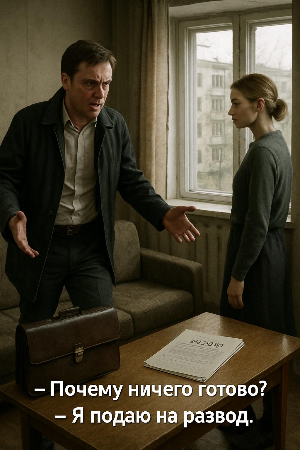 — Я подала на развод, — произнесла она спокойно. Бумаги лежали перед ним.