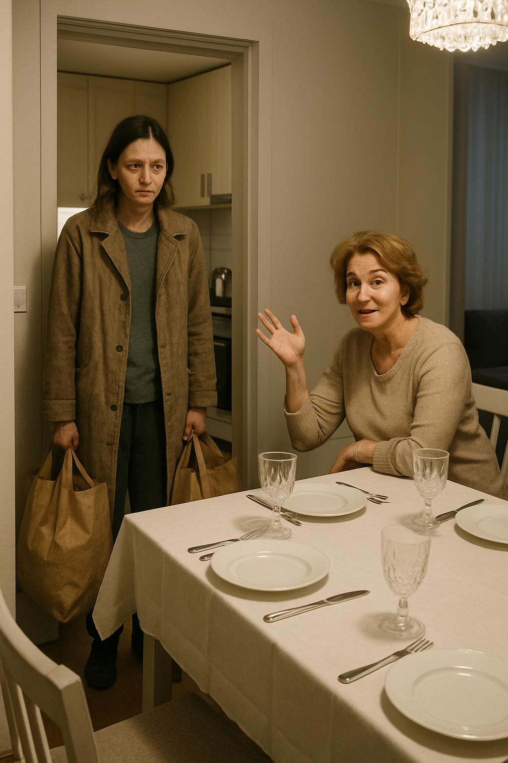 Маричка остановилась на пороге кухни, держа в руках тяжёлые пакеты с продуктами. Она только что вернулась после изнурительной двенадцатичасовой смены в поликлинике и была вымотана до предела. А на кухне уже всё было сервировано: белоснежная скатерть, которую она берегла для особых случаев, хрустальные бокалы — свадебный подарок. И посреди всей этой сцены — Оксана, мать её мужа Дмитрия.