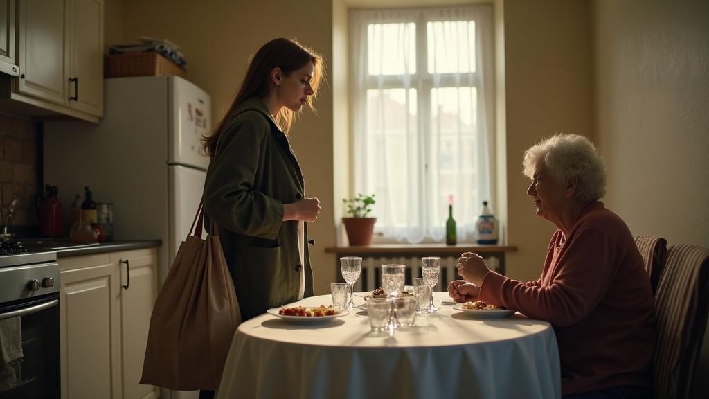 Маричка остановилась на пороге кухни, держа в руках тяжёлые пакеты с продуктами. Она только что вернулась после изнурительной двенадцатичасовой смены в поликлинике и была вымотана до предела. А на кухне уже всё было сервировано: белоснежная скатерть, которую она берегла для особых случаев, хрустальные бокалы — свадебный подарок. И посреди всей этой сцены — Оксана, мать её мужа Дмитрия.