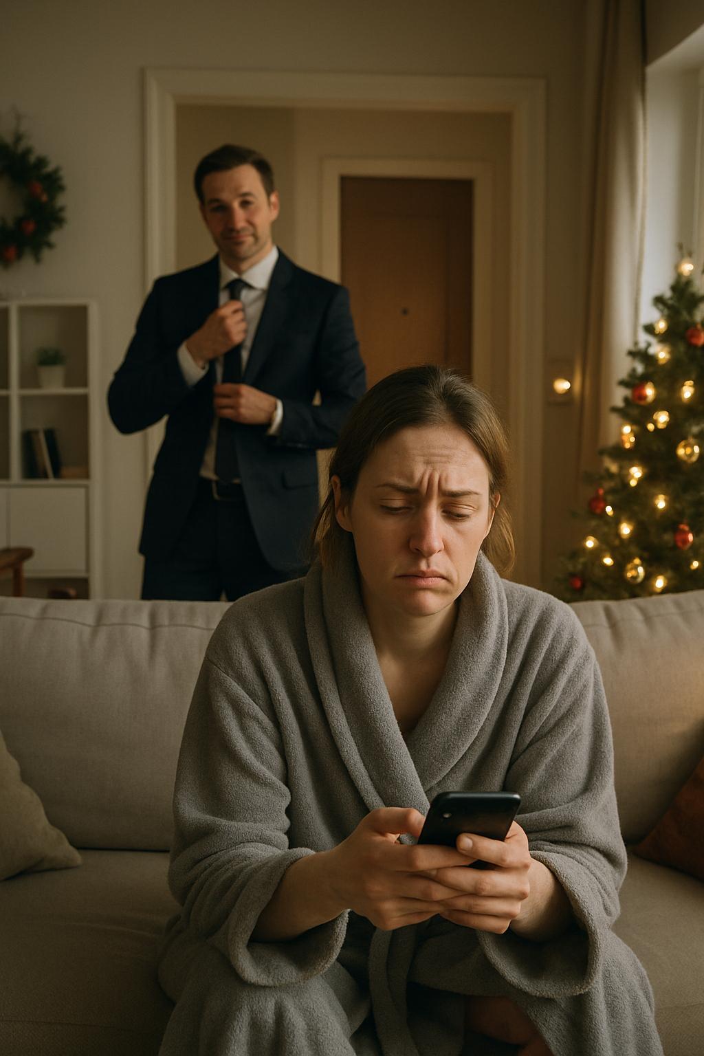 Оксана с трудом оторвала взгляд от экрана телефона. В рабочем чате супермаркета царил предновогодний хаос: «Куда делись ценники на шампанское?!», «Касса №4 зависла!». Она положила мобильный в сторону и, сдержав усталый вздох, потянулась к вороту мужа. Её пальцы, огрубевшие от постоянного пересчета наличности и антисептиков, ловко затянули шелковый узел.