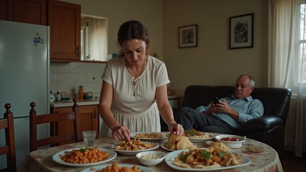 Оксана ответила машинально и потом ещё три часа ворочалась в постели. Пятый гость рушил весь её тщательно выстроенный план. Она уже распределила блюда по тарелкам, рассчитала каждую ложку майонеза. Богдан с женой Анастасией, её муж Сергей и она сама — четверо. А теперь Александр врывался в эту хрупкую гармонию чисел.