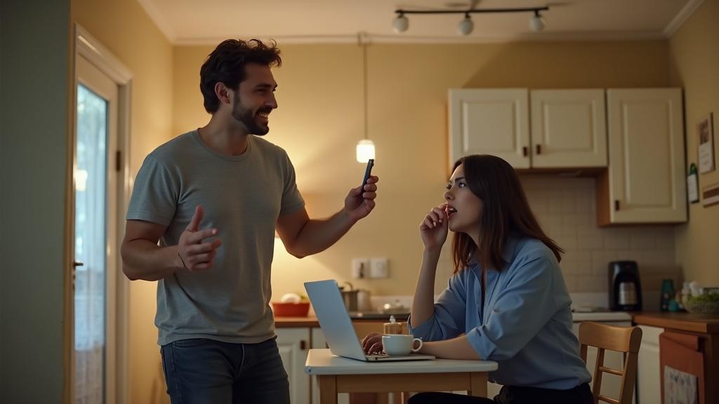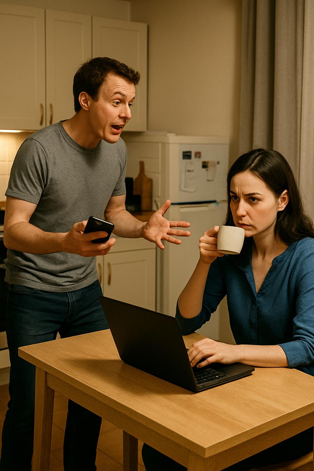 Утро началось напряжённым молчанием: Ярослав сидел за кухонным столом с телефоном в руках; Ганна готовила завтрак молча, избегая встречаться с ним взглядом. Вчерашняя сцена оставила неприятный осадок между ними обоими.