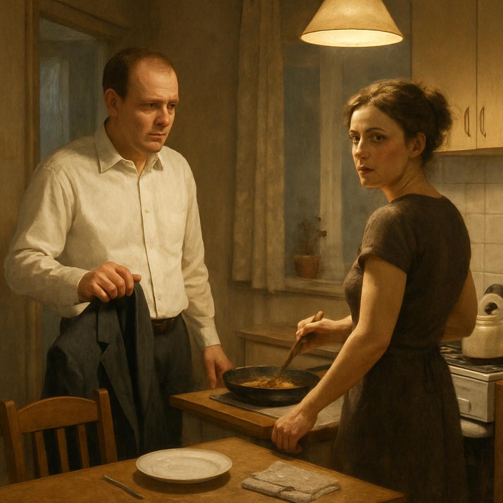Оксана хлопотала на кухне. Сковородка тихо потрескивала под её руками, пряди волос выбились из причёски, но даже в этой лёгкой небрежности он видел ту женщину, ради которой жил последние десять лет.