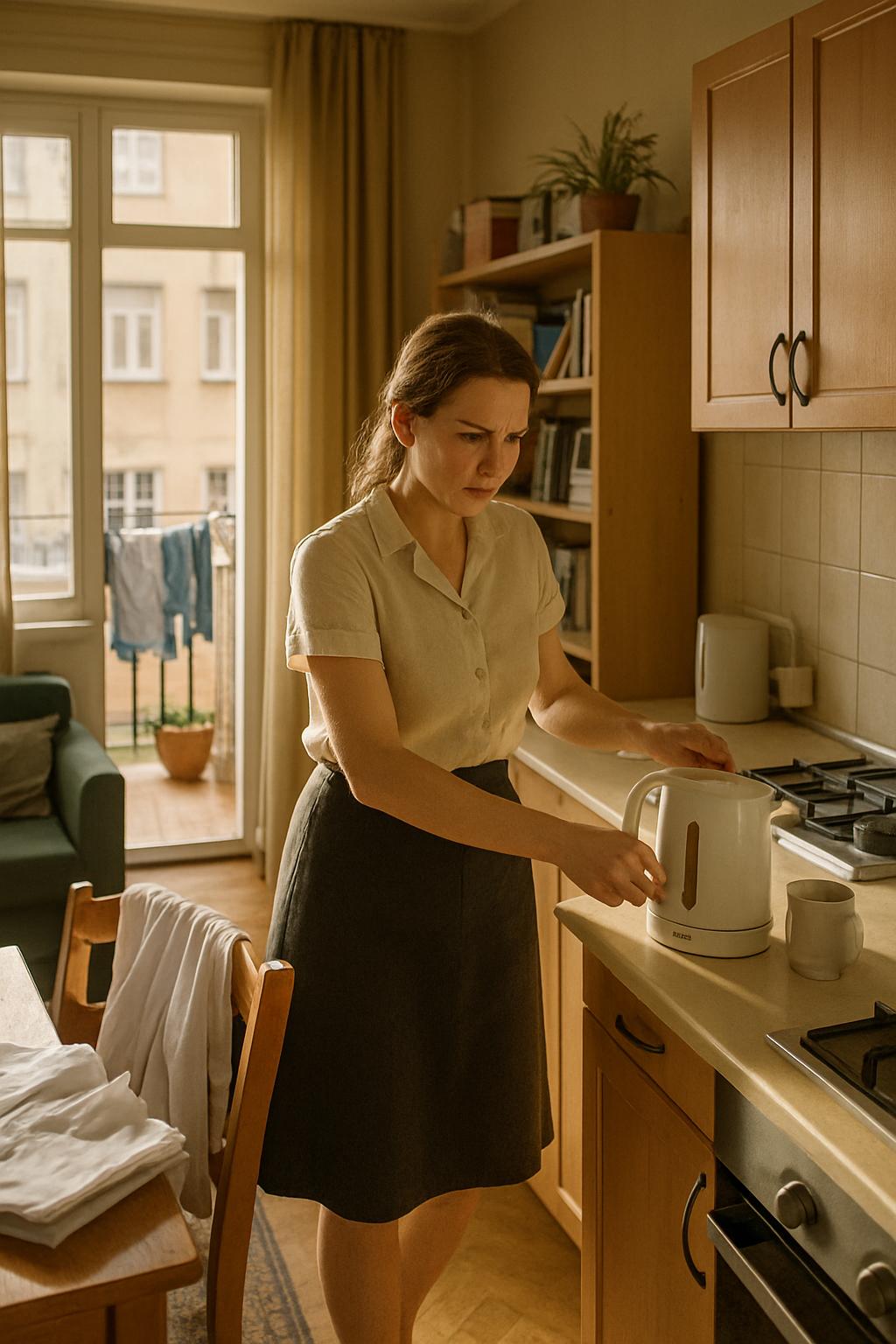 Ганна почувствовала внутри щелчок — включилась та самая собранность из её внутренней папки контроля. Она ничего не сказала вслух: просто поставила рядом со шнуром табуретку для безопасности детей и убрала скатерть со стола. «На часик», напомнила себе мысленно и закрыла ноутбук Дмитрия в шкафу: там хранились важные чертежи.