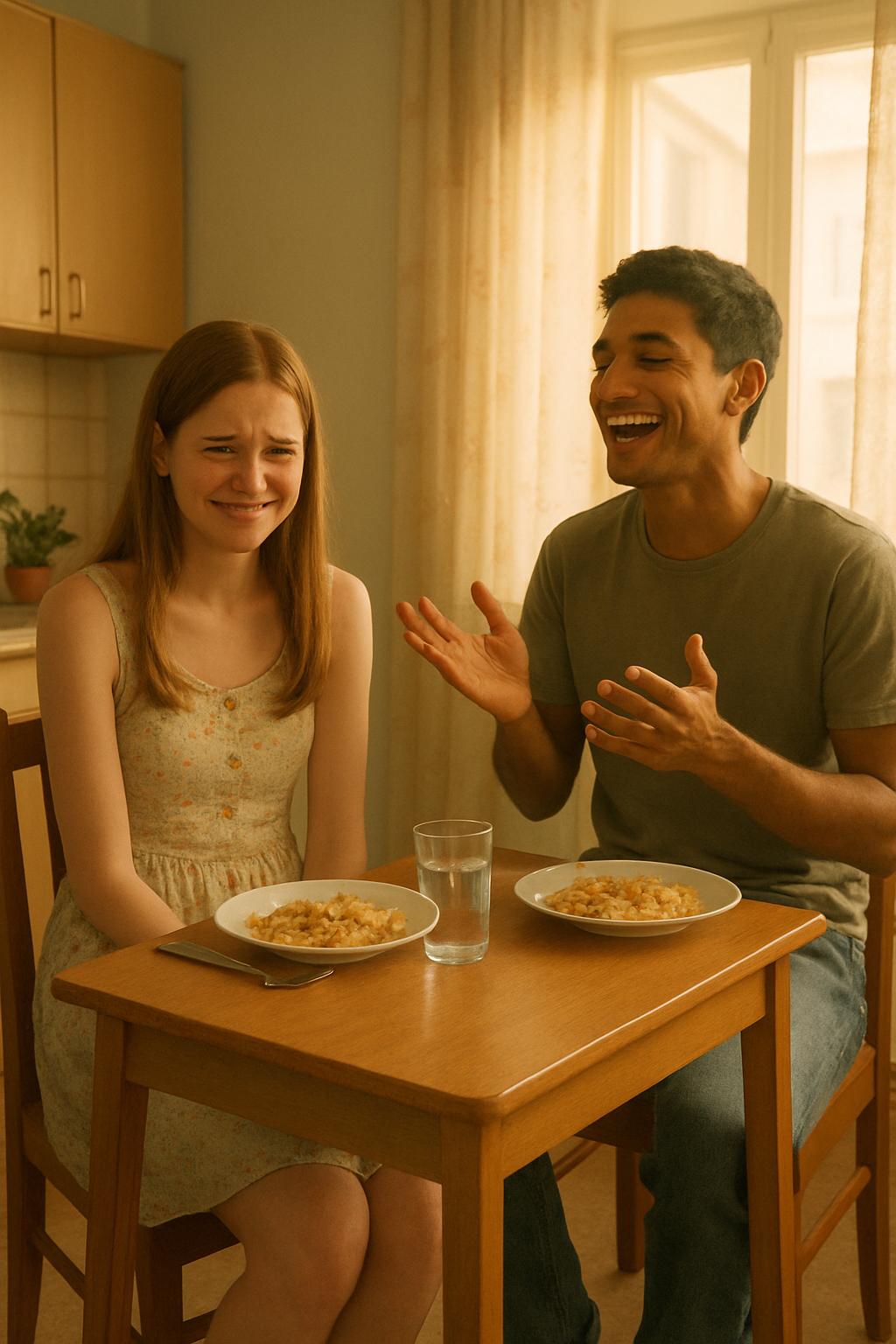 Зоряна сидела с натянутой улыбкой, уставившись в тарелку.