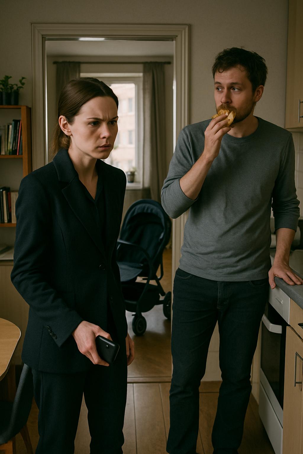 — А, это… — Артём откусил ещё кусок и неторопливо прожевал. — Оксанка заходила. Ей с малым нужно было в центральный парк выбраться. Их старая «трость» развалилась — колесо прямо у подъезда отвалилось. У неё же ключ есть, помнишь? Я сказал: бери, конечно, мы сегодня всё равно дома, у Леси насморк.