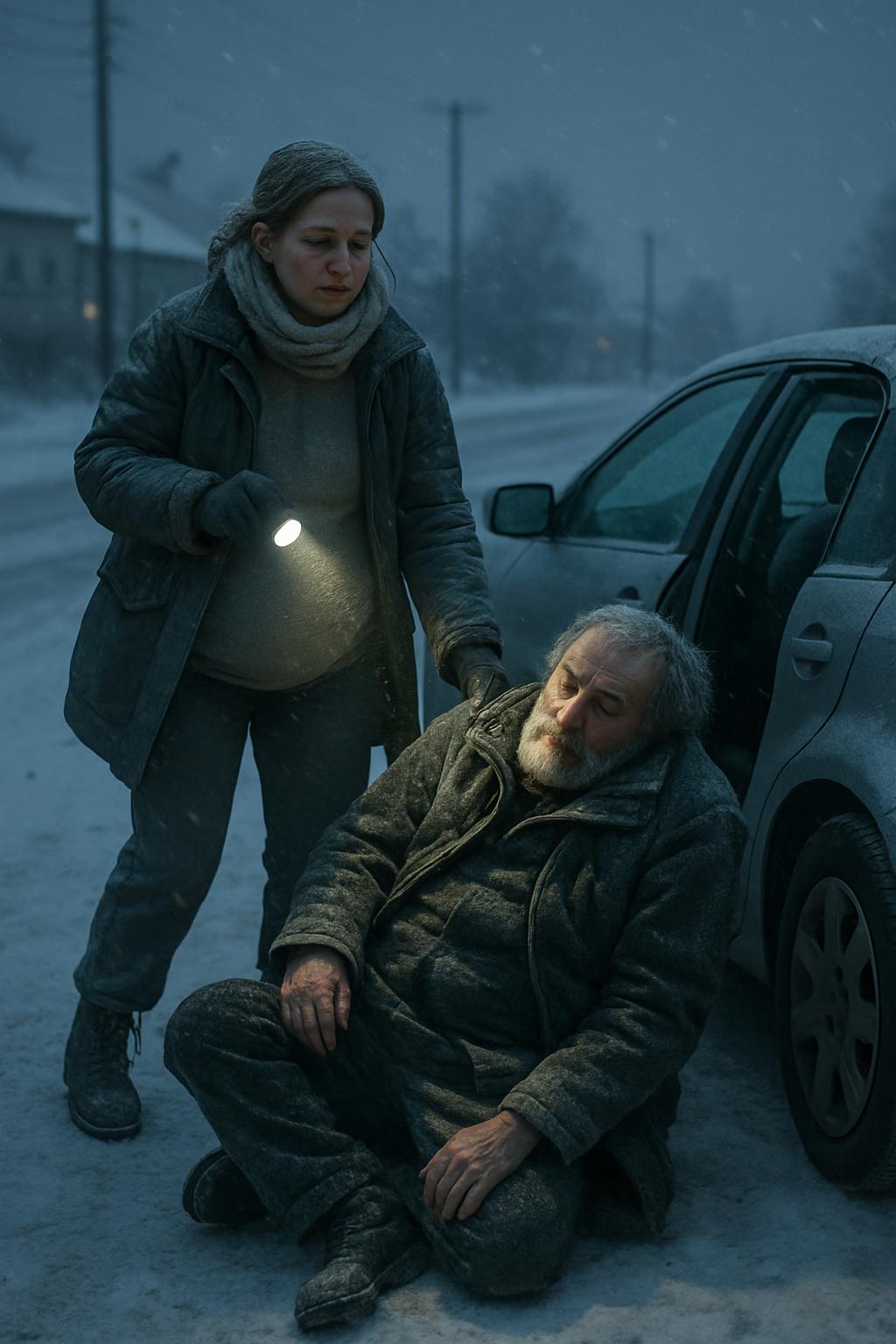 Виктория притормозила, хотя внутренний голос настойчиво твердил — не останавливаться. У обочины, почти у самого асфальта, лежал человек. Не сидел и не стоял — именно лежал, свернувшись в комок. Метель хлестала по лобовому стеклу, дворники едва справлялись. Она вышла из машины и включила фонарик.
