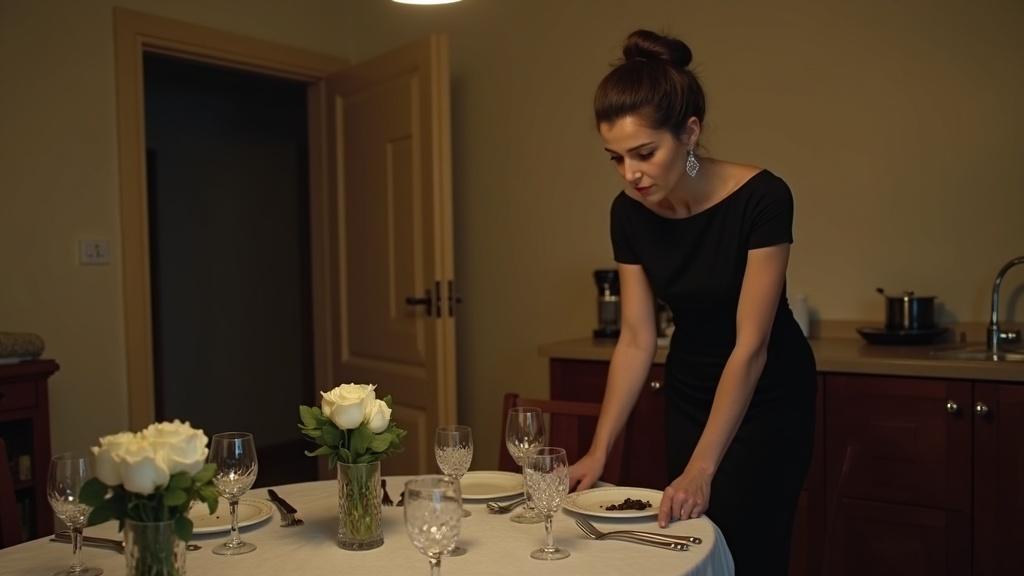 Стол сервирован до мелочей. Блюда ждут своего часа в подогревателях. Вино охлаждено до нужной температуры. Я успела принять душ и переодеться: чёрное платье по фигуре, лёгкий макияж, распущенные волосы… В зеркале отражается образ ухоженной женщины из глянцевого журнала — готовой встречать важного гостя как полагается хозяйке дома.