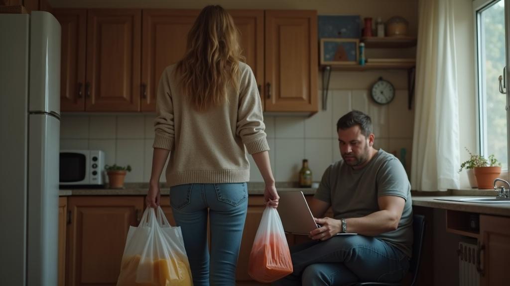 Леся вернулась из магазина, неся два пакета с продуктами и ощущая тревожное напряжение. Она предчувствовала, что разговор будет непростым. Это чувство появилось ещё тогда, когда она положила в корзину упаковку качественного сыра — не тот дешёвый, резиновый, который они обычно брали, а нормальный, вкусный, который ей действительно нравился.