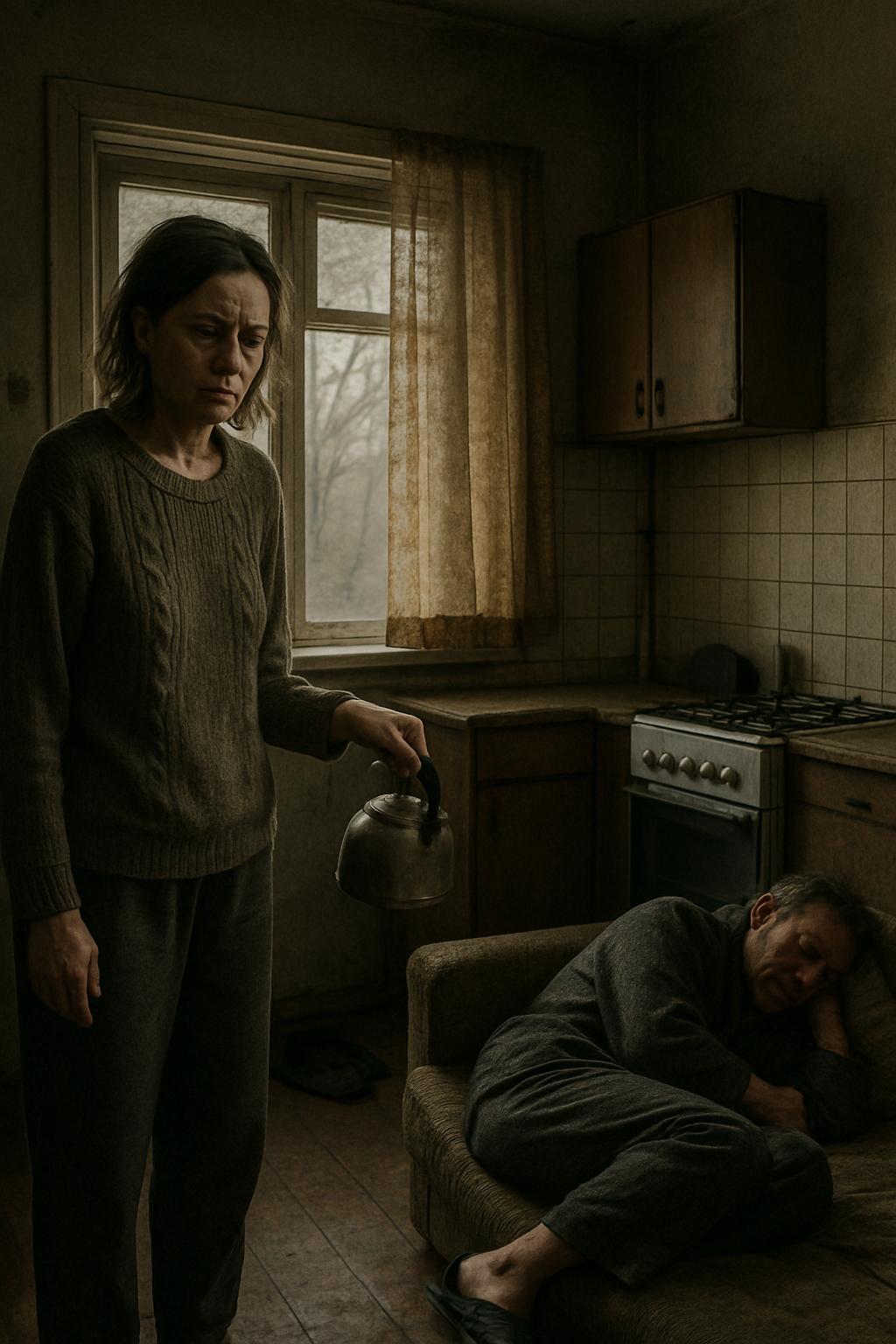 Тяжёлый запах дешёвого табака так глубоко впитался в кухонные шторы, что никакая стирка уже не могла его вывести. Марьяна поморщилась, переступая порог помещения, которое когда-то было центром их домашнего уюта, а теперь служило спальней для её мужа и временным укрытием для неё самой — местом, где можно было на несколько минут спрятаться от шума и суеты. Хотя на часах только пробило семь утра, по квартире уже разносился звук шаркающих тапок: «хозяин» проснулся.