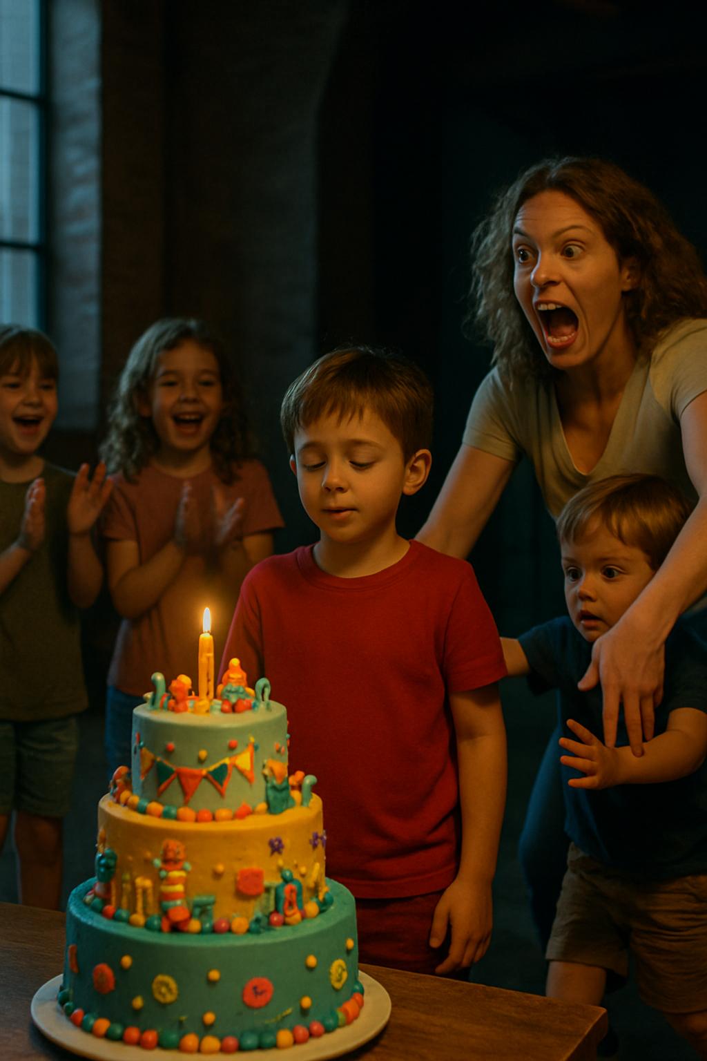Данил подошёл к торту. Он прикрыл глаза, собираясь загадать самое заветное желание. Пламя свечей дрожало, отбрасывая теплый свет на его радостное лицо.