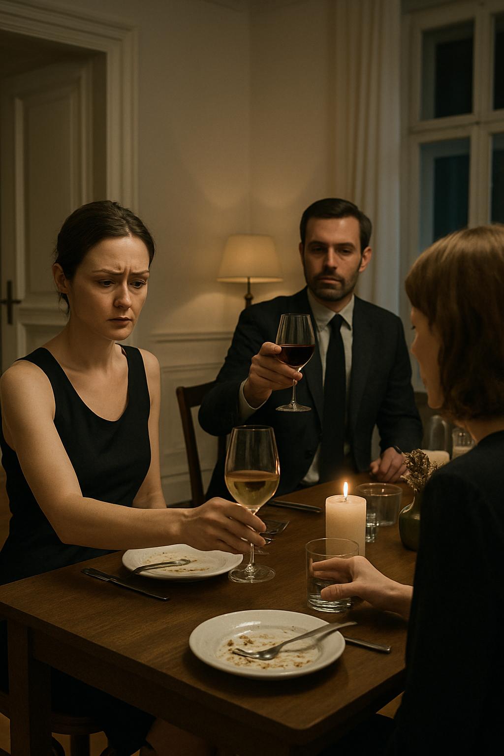 Вечером, в день нашей годовщины, муж с торжественным видом поднял бокал. Я последовала его примеру, но вдруг заметила странное движение — будто он что-то бросил в мой напиток. Внутри всё сжалось от тревоги. Не желая рисковать, я осторожно поменяла свой бокал с тем, что стоял перед его сестрой, которая сидела рядом. Никто ничего не заметил.