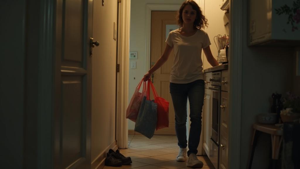 Александра захлопнула за собой дверь и на мгновение прислонилась к косяку, пытаясь перевести дыхание. Ремни тяжёлых пакетов с продуктами больно врезались в ладони. В прихожей царил беспорядок: обувь была разбросана по полу, а на плитке виднелись какие-то странные пятна.