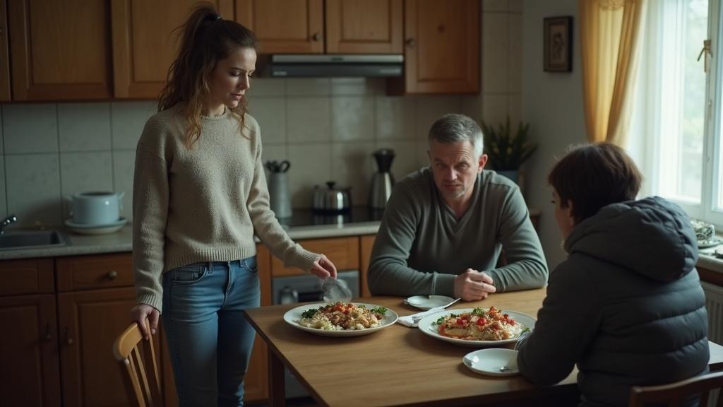 Мы втроём сидели за столом. Котлеты остыли до резинового состояния, картошка сбилась в комки, чай стал ледяным.