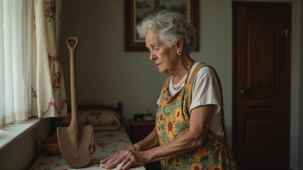 Она повернулась и направилась к сараю. Лопата оказалась тяжёлой, облепленной глиняными комьями.