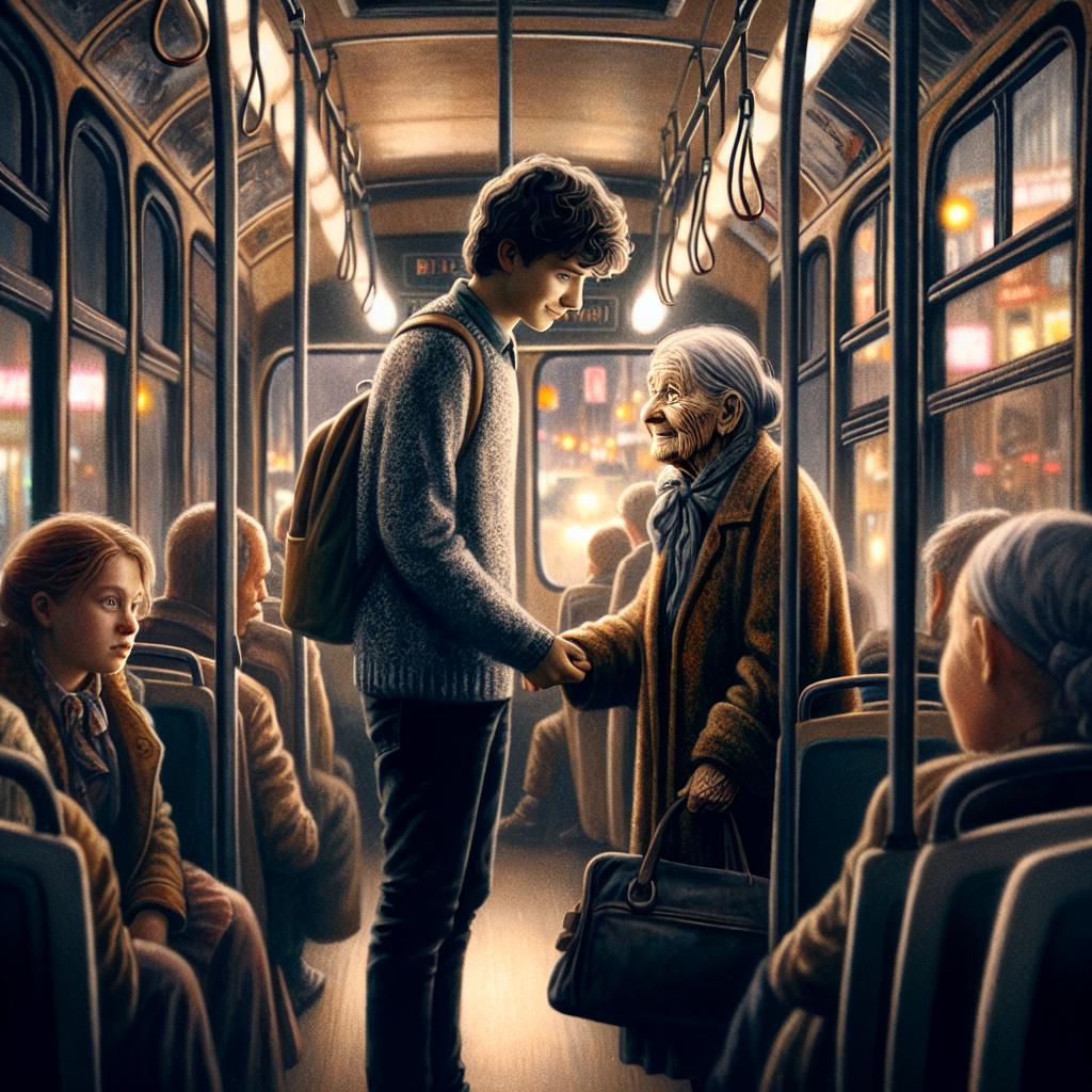 На одной из остановок в салон с трудом протиснулась Тамара. Сутулая фигура в поношенном пальто, лицо — сеть глубоких морщин: казалось, она несёт на себе груз целого мира. Не раздумывая ни секунды, Ганна поднялась.