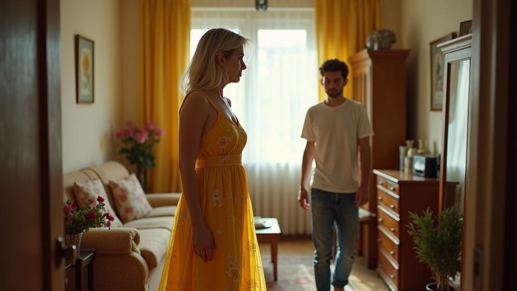 Завтра Богдан женится. Мария стояла перед зеркалом и примеряла новое платье: ярко-жёлтое, с широкой юбкой в цветочек и открытыми плечами. Олег похвалил наряд — и Мария снова убедилась: платье действительно эффектное.