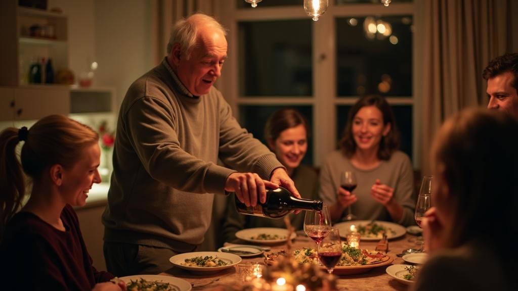 И вот снова вечер в самом разгаре. Весёлый гомон, смех, звон бокалов. В центре внимания — Пётр. Он щедро разливал домашнее вино, пересказывал очередную весёлую историю, и гости слушали его с неподдельным интересом.