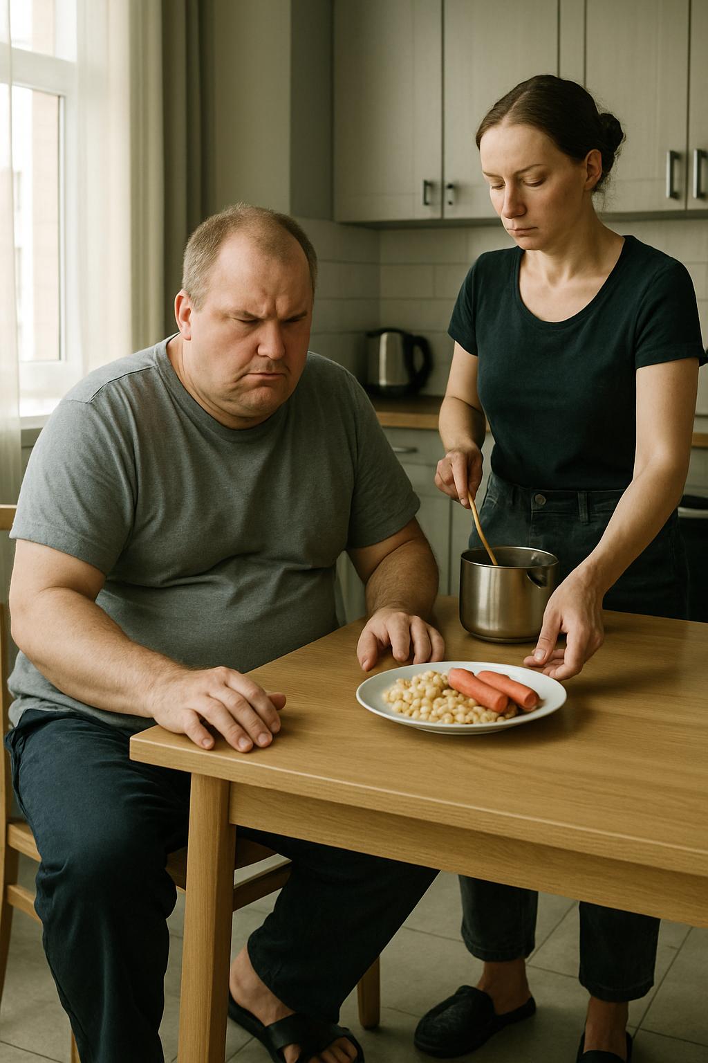 Григорий вошёл на кухню, шаркая тапками, словно хозяин в своих владениях. Он был грузным мужчиной с лицом, которое с годами не приобретало солидности, а словно стекало вниз, как плохо закреплённая штукатурка. Монтажник фасадных систем — профессия доходная, но Григорий был уверен: деньги любят не только счёт, а жёсткий контроль.