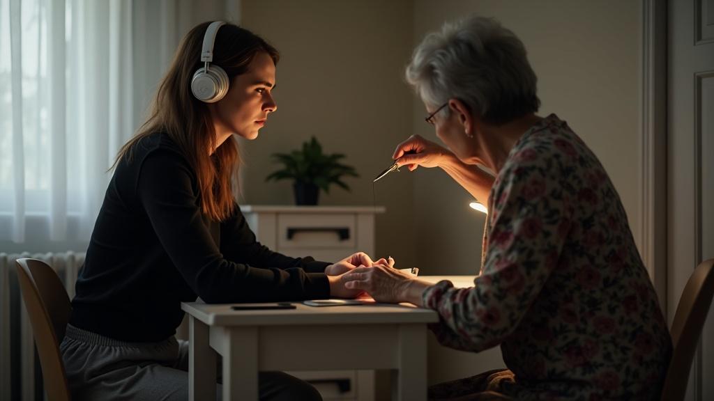 Ещё мгновение назад провод её дорогих рабочих наушников был целым, а теперь беспомощно свисал с разрезанным концом. — Я уже десять минут к тебе обращаюсь! — с вызовом заявила свекровь, бросая ножницы на стол. — А ты сидишь тут, уткнувшись в музыку, словно я невидимка.