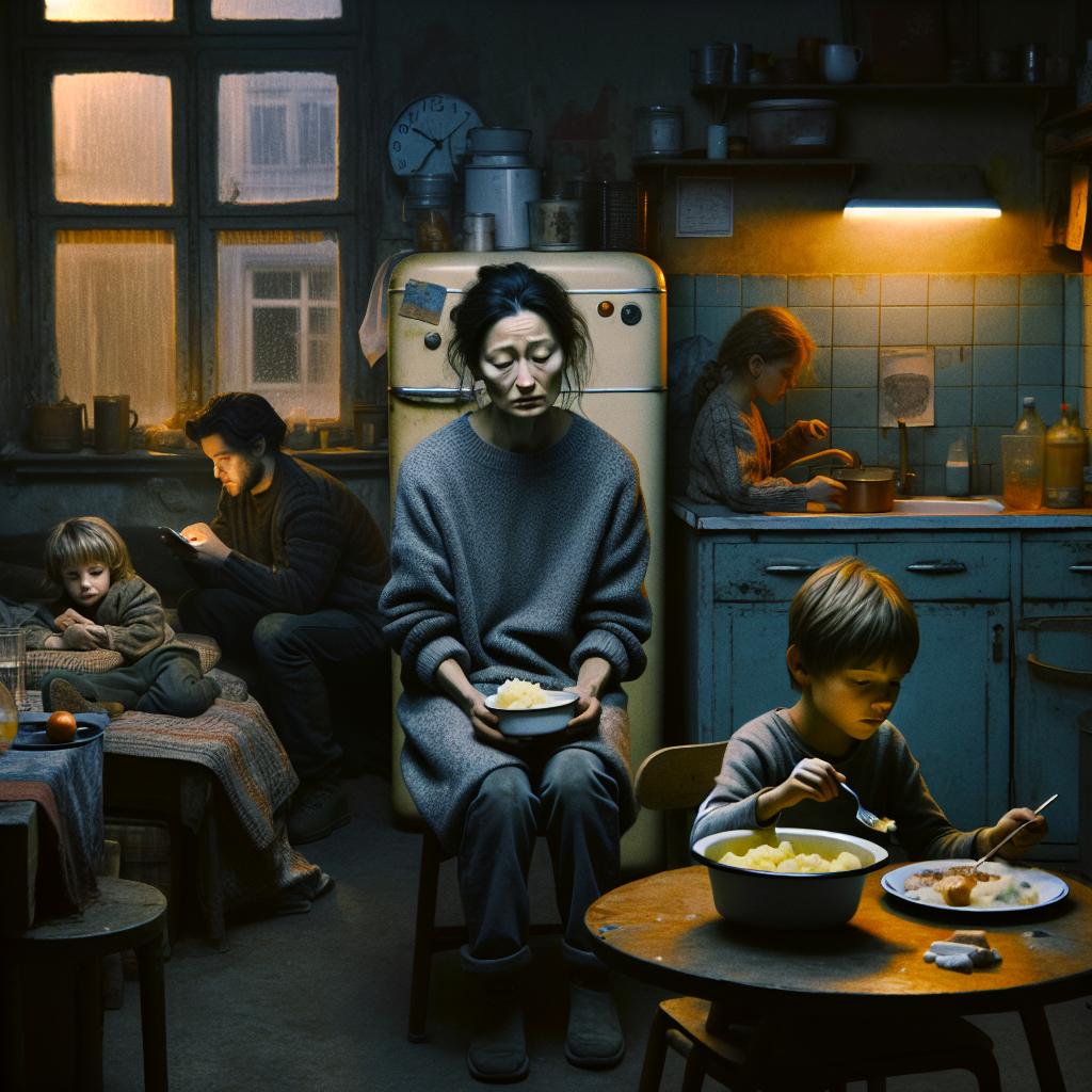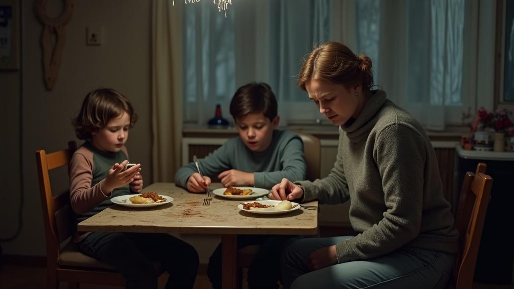 Тарас, которому недавно исполнилось четырнадцать, не отрывался от экрана телефона. Девятилетняя Оксана скучающе ковырялась ложкой в супе.