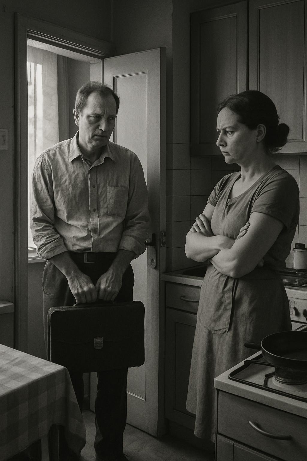 Он застыл в проёме кухни, всё ещё сжимая в руках портфель. Только что вернулся с работы, уставший после длинного дня в офисе, надеясь на спокойный вечер: тёплый ужин, немного душевного общения и чашку чая перед телевизором. Но слова жены прозвучали как ледяной душ.