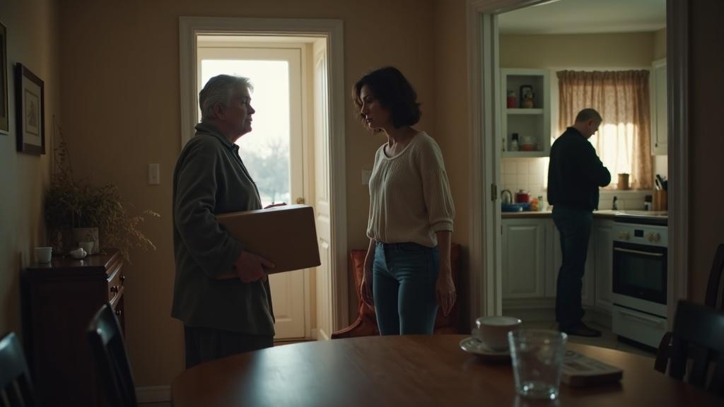 На лестничной площадке стояла Галина с большой коробкой в руках. По её лицу сразу было видно — что-то неладное.