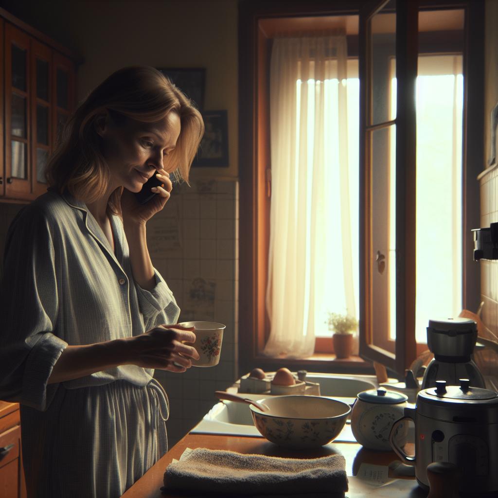 Началось всё с пустяка. Я стояла на кухне, готовила себе кофе, глядела в окно на хмурое небо и машинально листала экран телефона. Муж уехал на два дня в командировку — в соседний город, на совещание. Мы созванивались каждое утро — это стало нашей традицией. Маленький ритуал, который связывал нас даже на расстоянии.