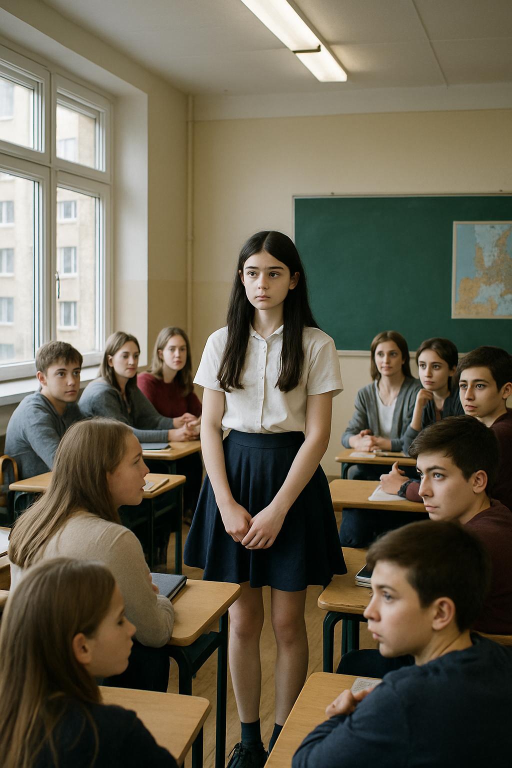 — Познакомьтесь, ребята. Это Марта Кравченко. Её семья только что переехала к нам из Винницы.